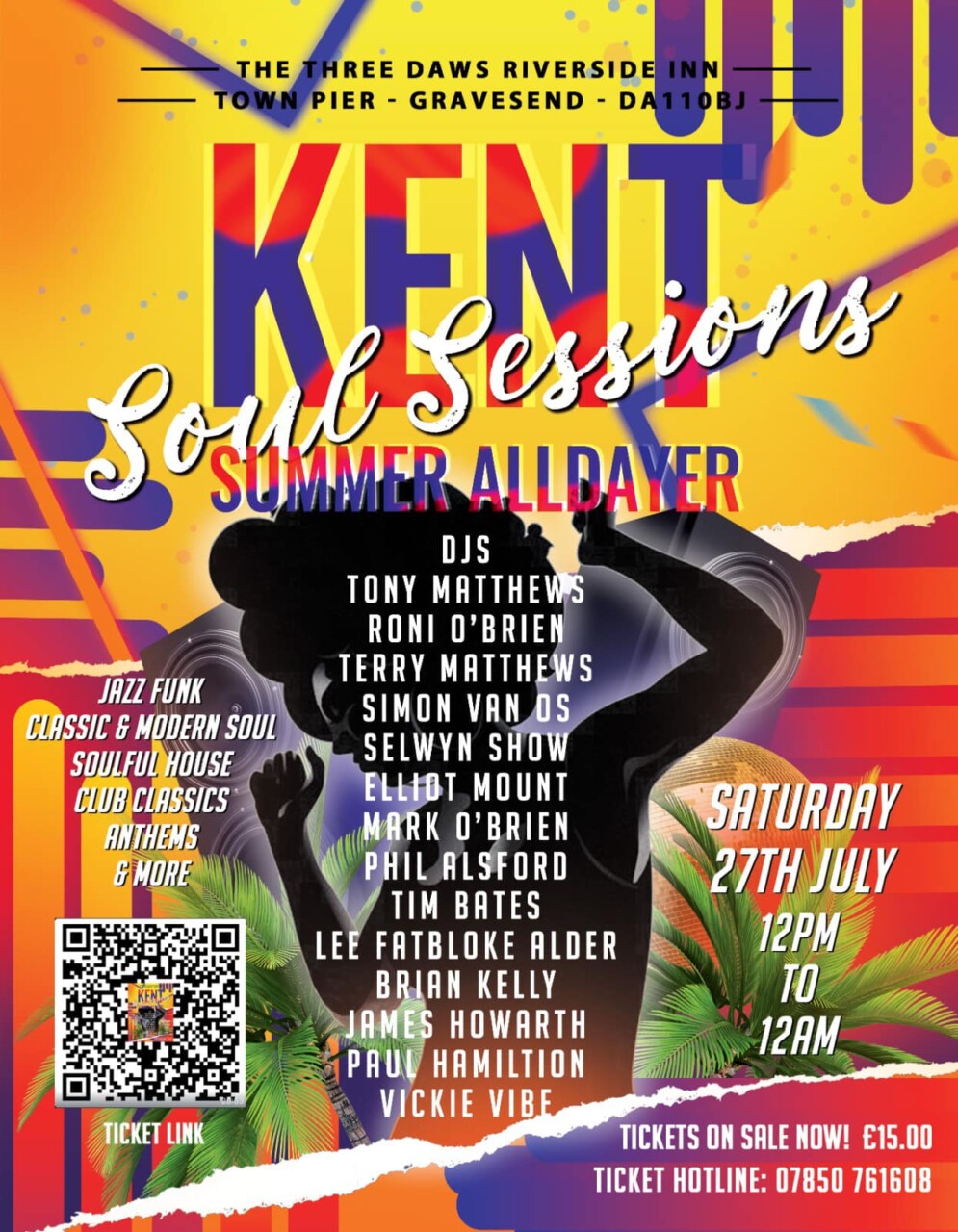 « All Events This event has passed. Kent Soul Session (Ticketed Event) 27th July 2024 @ 12:00 pm - 12:00 am Event Navigation « Charity Bingo Evening! Annual Beer & Music Festival » Add to calendar Google Calendar iCalendar Outlook 365 Outlook Live Details Date: 27th July 2024 Time: 12:00 pm - 12:00 am Venue Downstairs Function Room The Three Daws, Town Pier Gravesend, Kent DA11 0BJ United Kingdom + Google Map Phone 01474 566869 View Venue Website